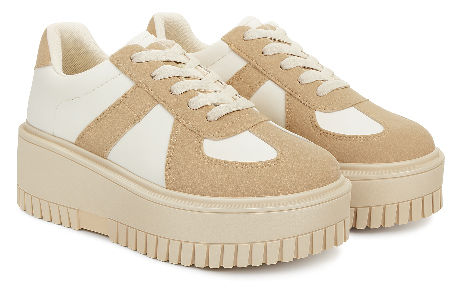 Zapatillas Plataforma Beige y Blanco – Estilo Urbano con Altura